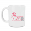 Natural cotton mug with the Labour Women's Network design printed in red and black to one side of the mug and "In politics guts is all." Barbara Castle printed to the other side