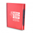 A red A5 sized recycled wiro bound note pad with pen featuring a "Labour Women Persist" design.